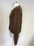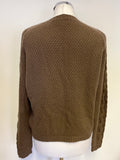 PURE COLLECTION BROWN CASHMERE & WOOL BLEND CABLE KNIT CARDIGAN SIZE 14