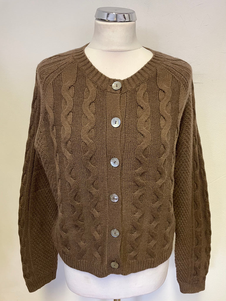 PURE COLLECTION BROWN CASHMERE & WOOL BLEND CABLE KNIT CARDIGAN