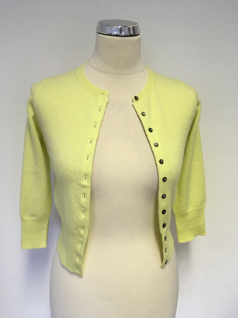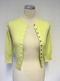 PURE COLLECTION LEMON 100% CASHMERE CROPPED CARDIGAN SIZE 6