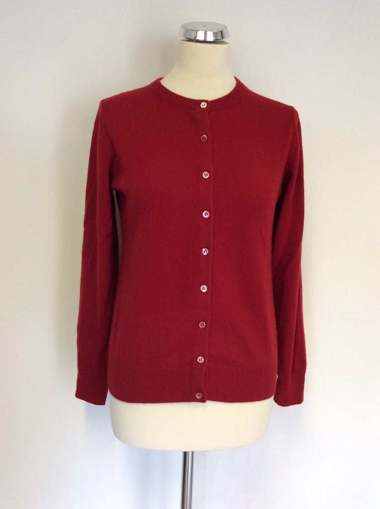 PURE COLLECTION RED CASHMERE CREW NECK CARDIGAN SIZE 12