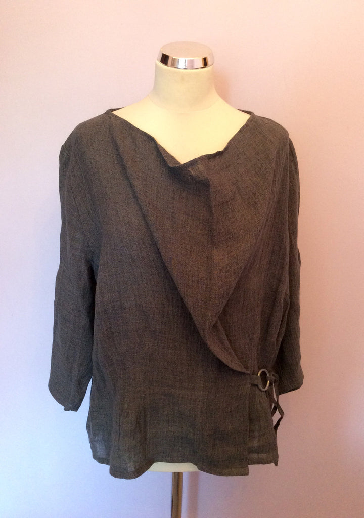 Q'NEEL DARK GREY LINEN BLEND TOP SIZE 16