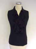 RALPH LAUREN BLACK RUFFLE FRONT SLEEVELESS TOP SIZE S