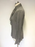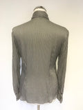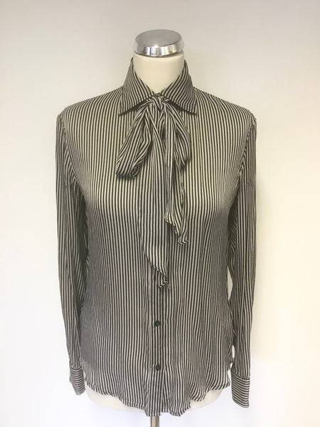RALPH LAUREN BLACK & SILVER GREY STRIPE SILK PUSSY BOW TIE BLOUSE SIZE 4 UK 8