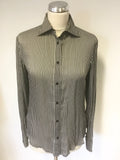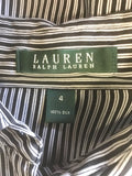 RALPH LAUREN BLACK & SILVER GREY STRIPE SILK BLOUSE