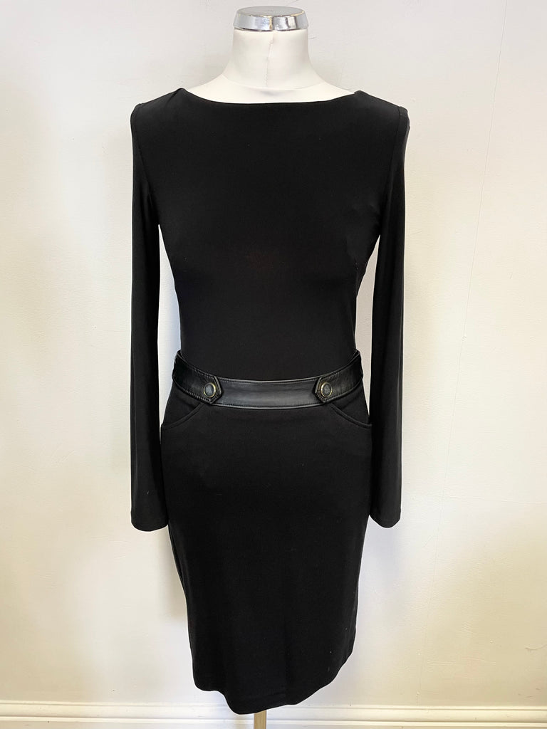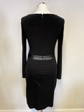 RALPH LAUREN BLACK WITH FAUX LEATHER TRIM LONG SLEEVE PENCIL DRESS SIZE 0 UK 6/8