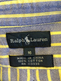 RALPH LAUREN BLUE & YELLOW STRIPED COTTON SHIRT SIZE 16