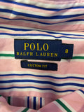 RALPH LAUREN POLO PINK & BLUE STRIPE CUSTOM FIT COTTON SHIRT SIZE 8 UK 12