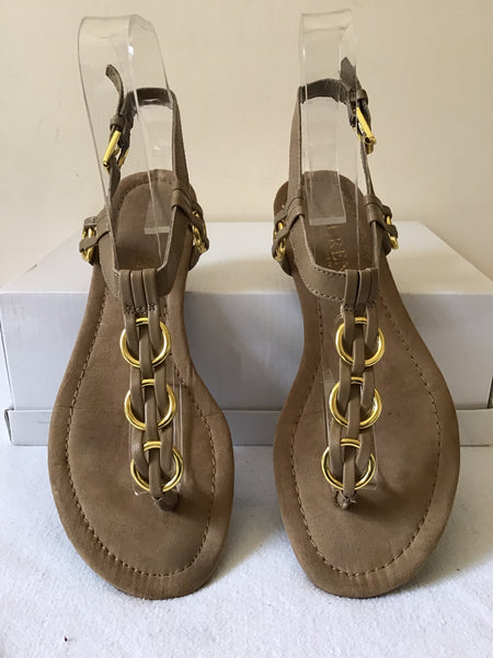 RALPH LAUREN TAUPE LEATHER & GOLD TRIM TOE POST SANDALS SIZE 3/35.5