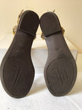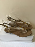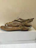 TOE POST WITH ENTWINED LEATHER STRAPS WITH GOLD METAL RINGS & BUCKLE FASTEN ANKLE STRAP