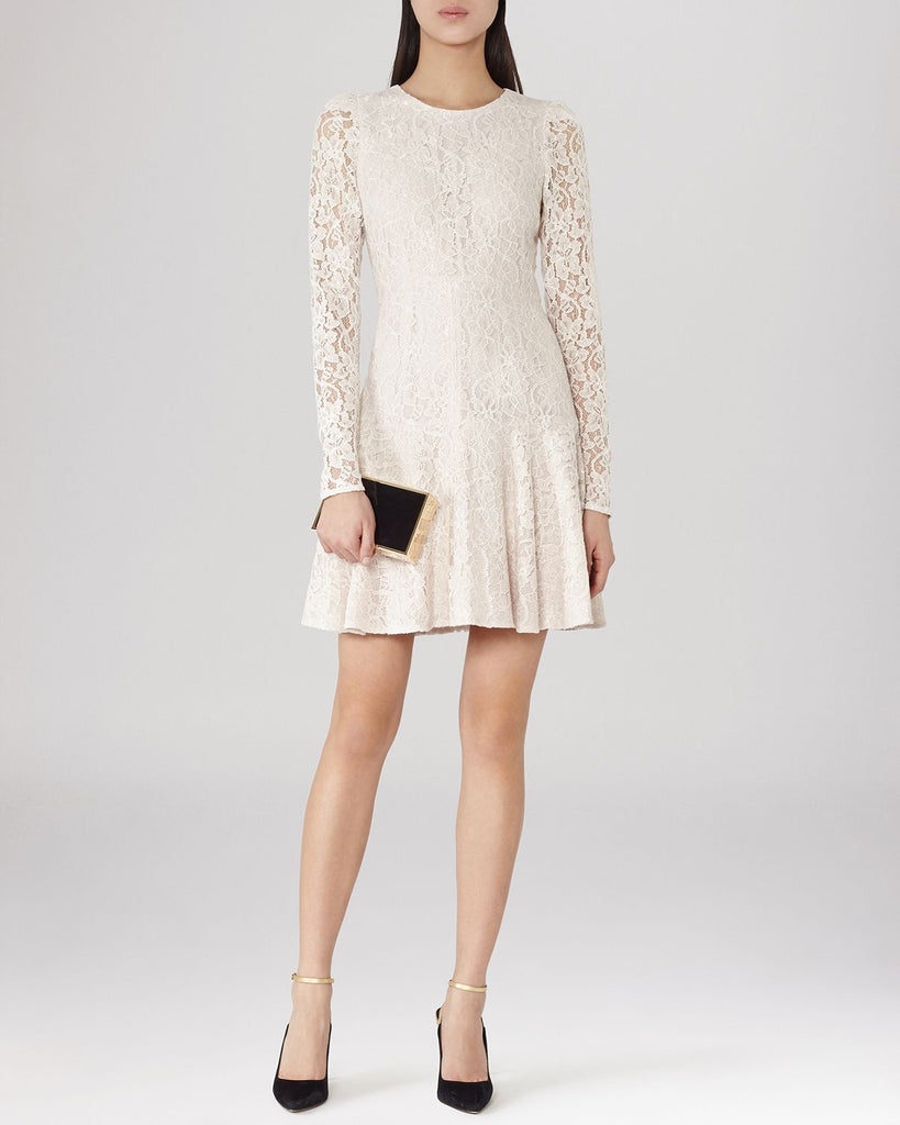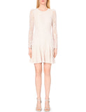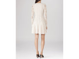 REISS NINETEEN SEVENTY ONE ROSALIN NUDE PINK  LACE LONG SLEEVED FIT & FLARE OCCASION DRESS