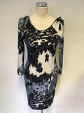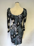 REISS 1971 VENUS GREY,BLACK & WHITE PRINT 3/4 SLEEVE MINI DRESS SIZE M