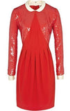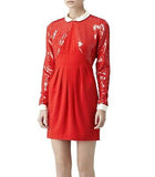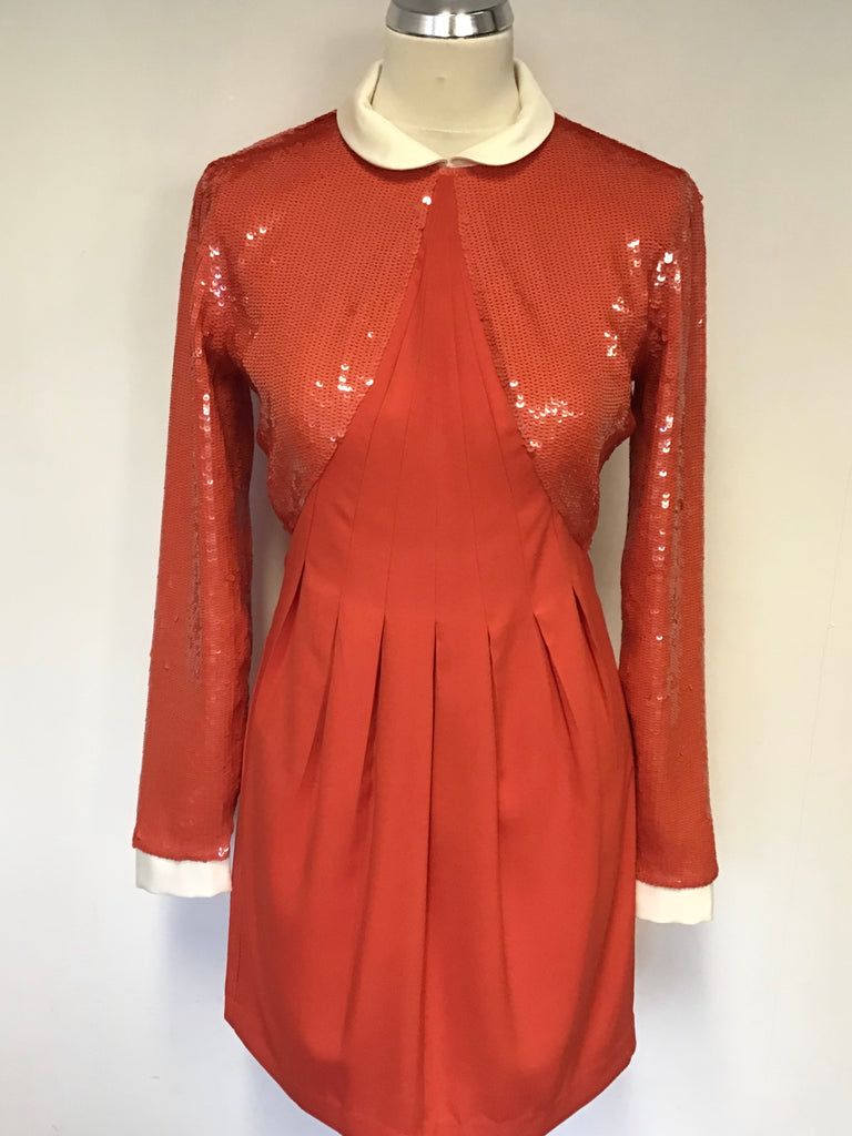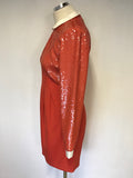 REISS ALISON RED SEQUINNED TOP LONG SLEEVE MINI DRESS SIZE 10