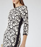 REISS ANABELLA BLACK & WHITE FLORAL LACE PENCIL DRESS