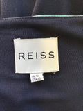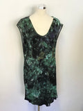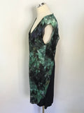 REISS BLACK & GREEN PRINT SILK FRONT OVERLAY SLEEVELESS PENCIL DRESS SIZE 14
