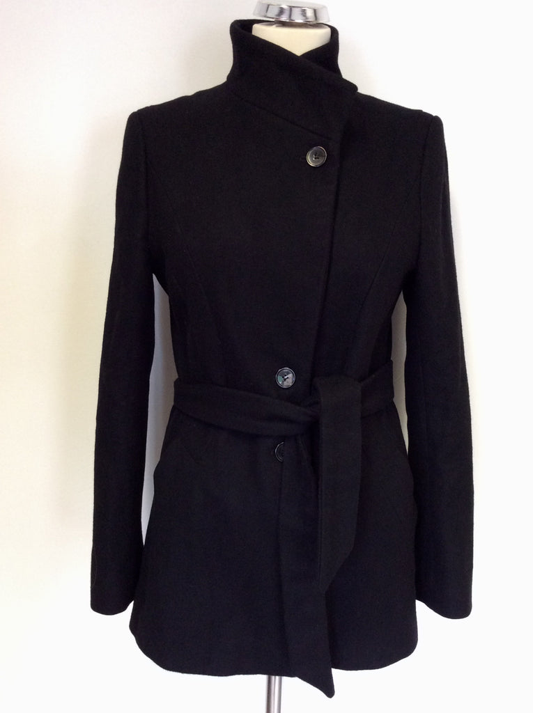 REISS BLACK JOSEPHINA WOOL BLEND FUNNEL NECK COAT SIZE S