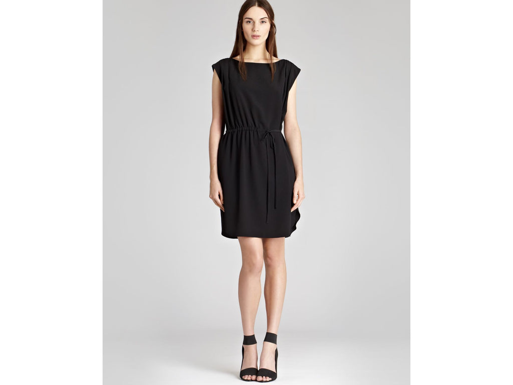 Reiss Black Rio Crepe Draped Shift Dress Size 12