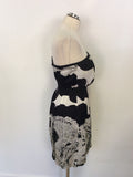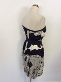 REISS BLACK & WHITE PRINT SILK STRAPLESS DRESS SIZE 8