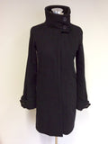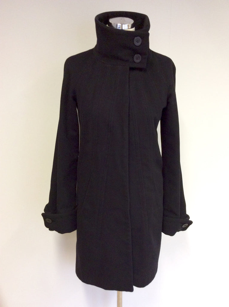 REISS BLACK WOOL BLEND KNEE LENGTH COAT SIZE XS