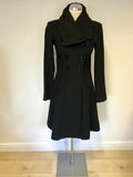 REISS BLACK WOOL & CASHMERE BLEND FIT & FLARE ZIP UP COAT SIZE XS