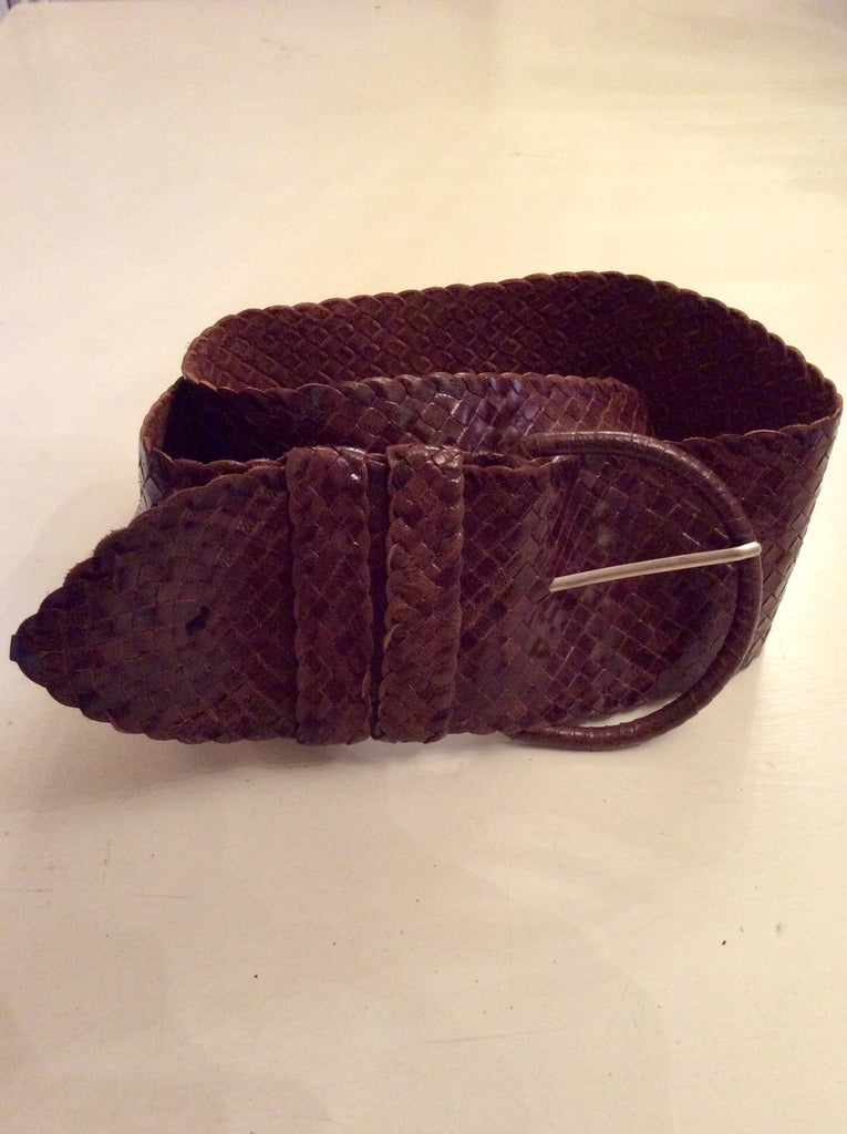 REISS BROWN LEATHER PLAITED BELT SIZE M