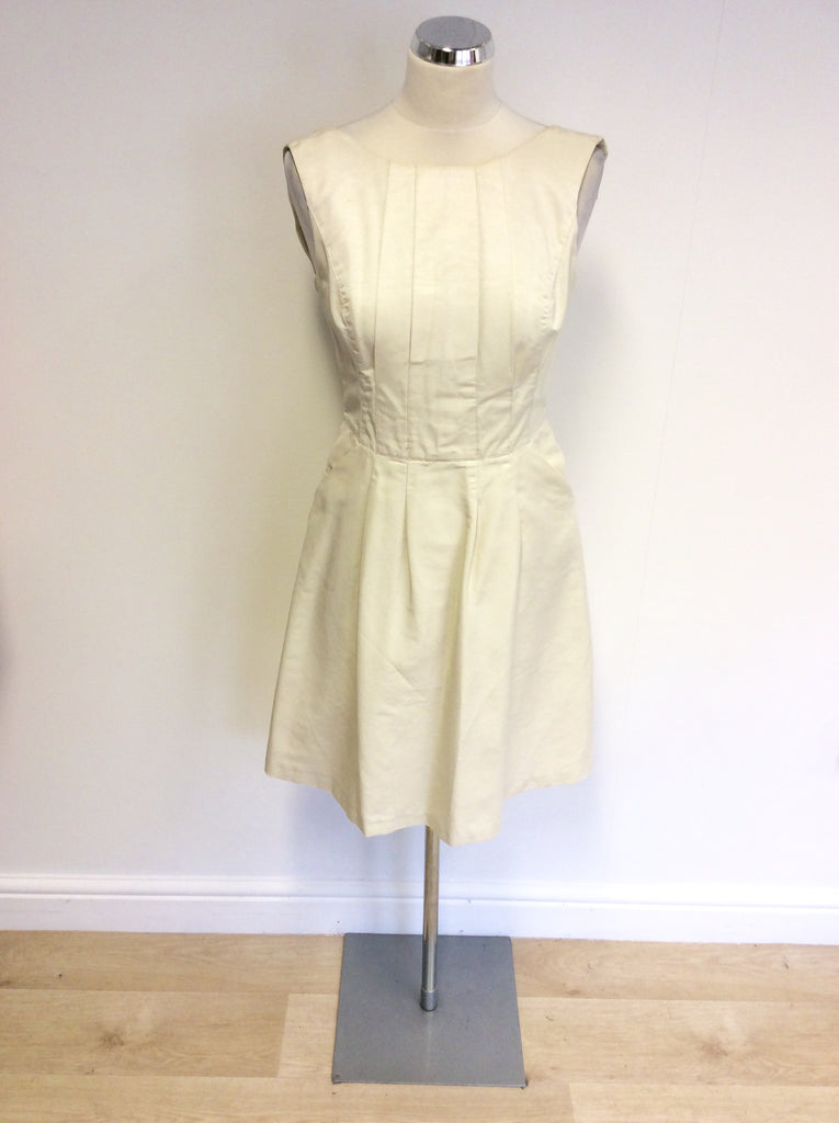 REISS CREAM SCOOP NECKLINE PLEATED TRIM OCCASION DRESS SIZE 8
