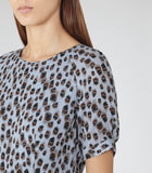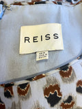 REISS JULES CORNFLOWER BLUE WITH MAROON, NAVY & GREY PRINT SILK FIT & FLARE DRESS