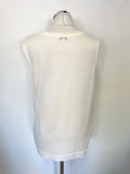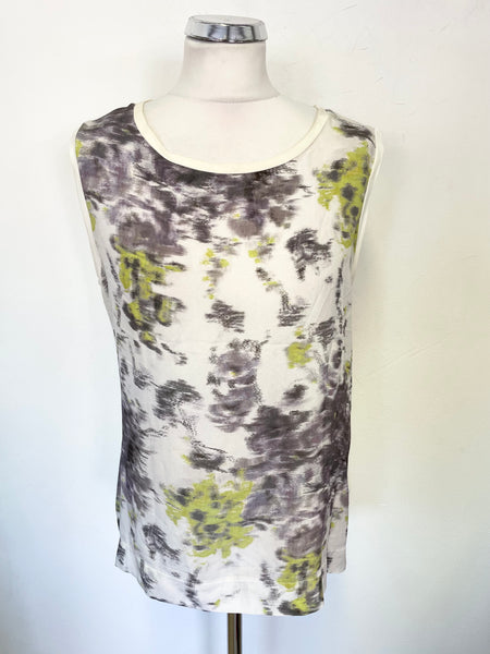 REISS KALI IVORY,GREEN & GREY PRINT SILK FRONT SLEEVELESS TOP SIZE L