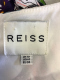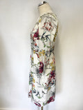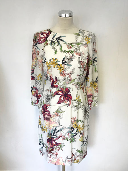 REISS LOTTIE IVORY & MULTI COLOURED FLORAL PRINT 3/4 SLEEVE SILK DRESS SIZE 10