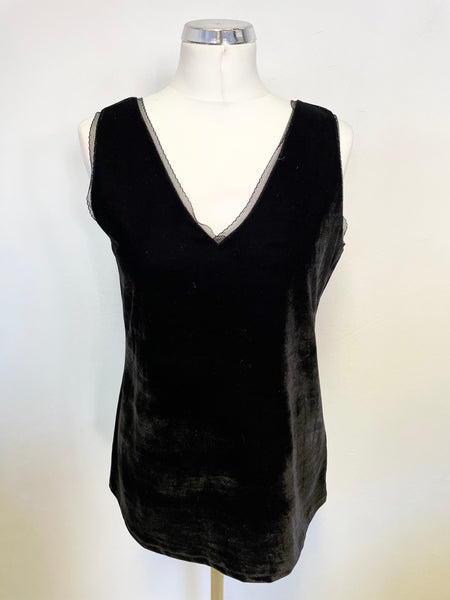 REISS ONARI BLACK VELVET LACE TRIM SLEEVELESS TOP SIZE M
