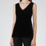 REISS ONARI BLACK VELVET SLEEVELESS TOP