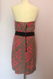 Reiss Pink & Brown Print Strapless Silk Eva Dress Size 14