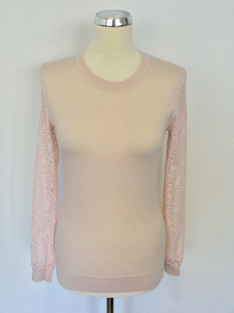 REISS CARA PALE PINK LACE SLEEVE JUMPER SIZE S