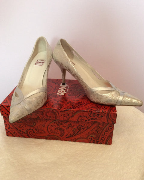 Renata Silver Leather Heeled Court Shoes Size 6.5/39.5