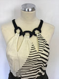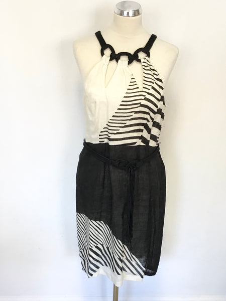 RENE DERHY BLACK & IVORY STRIPE DESIGN LINEN & SILK TRIM SLEEVELESS DRESS SIZE L UK 14