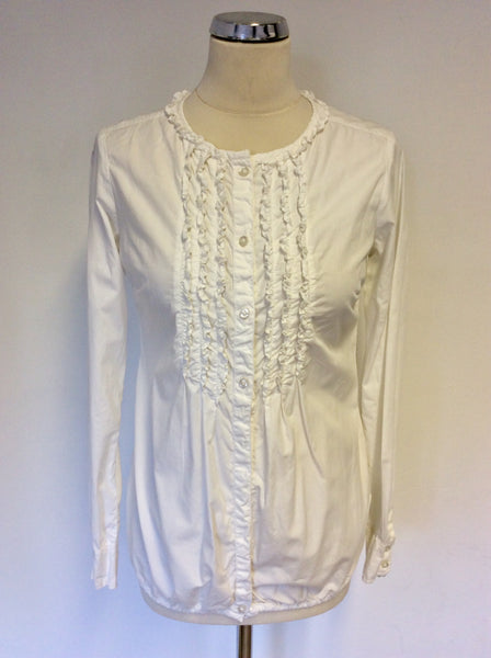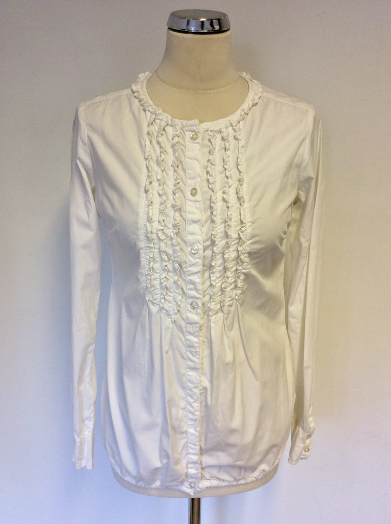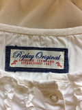 REPLAY ORIGINAL WHITE FRILL TRIM LONG SLEEVE SHIRT SIZE XS