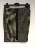 RIANI BLACK,BEIGE & WHITE WEAVE ZIP FRONT WOOL BLEND PENCIL SKIRT SIZE 12