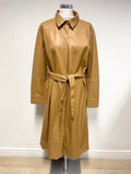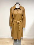 RINO & PELLE TAN FAUX LEATHER BELTED MIDI SHIRT DRESS SIZE 44 UK 16