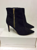 RIVER ISLAND BLACK SUEDE HEEL ANKLE BOOTS SIZE 6/39
