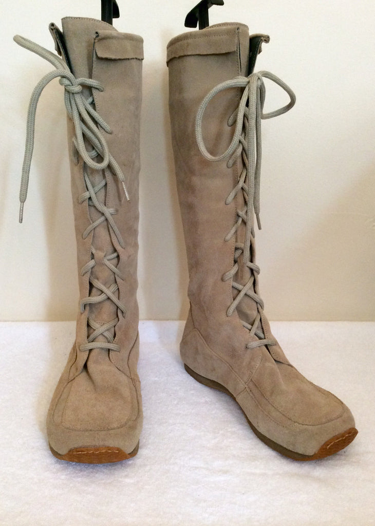 Rizzo Beige Suede Knee Length Lace Up Flat Boots Size 6/39