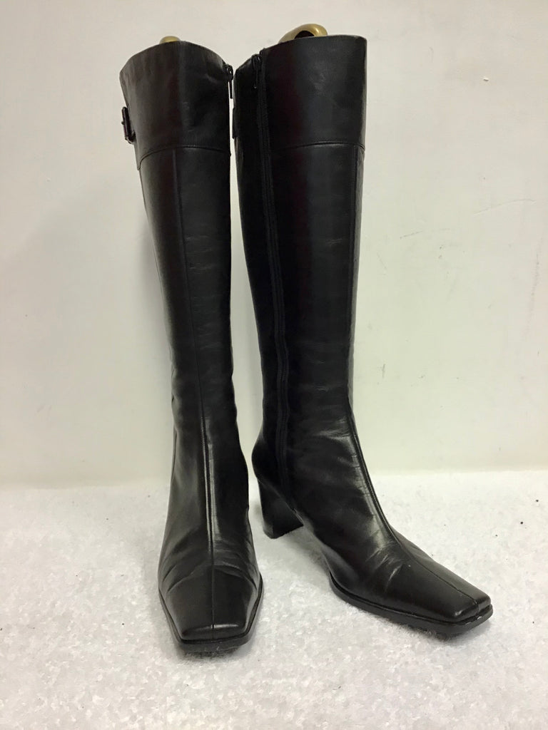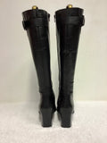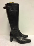ROBERTO VIANNI BLACK LEATHER BUCKLE TRIM KNEE LENGTH BOOTS SIZE 7/40