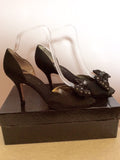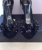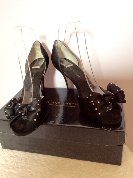 Roland Cartier Black Satin Diamante Bow Trim Peeptoe Heels Size 4.5/37.5