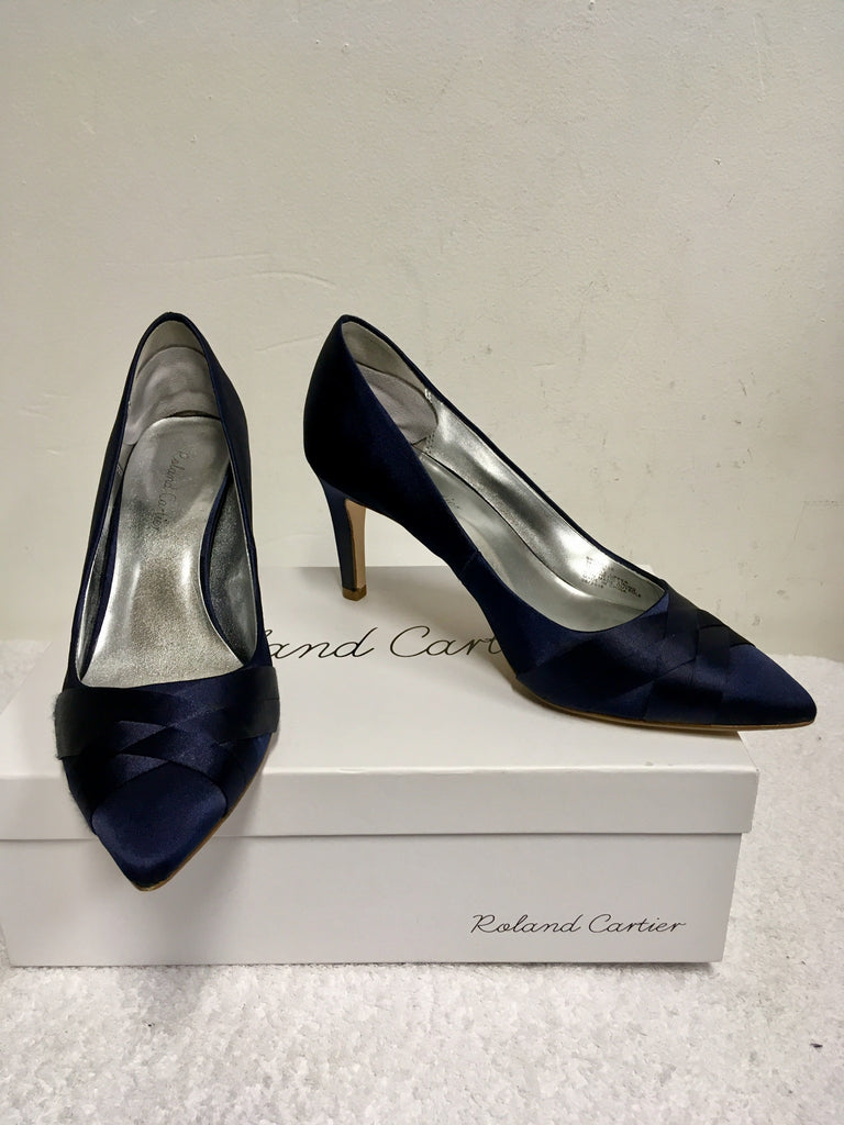 ROLAND CARTIER NAVY BLUE SATIN HEELS SIZE 5/38