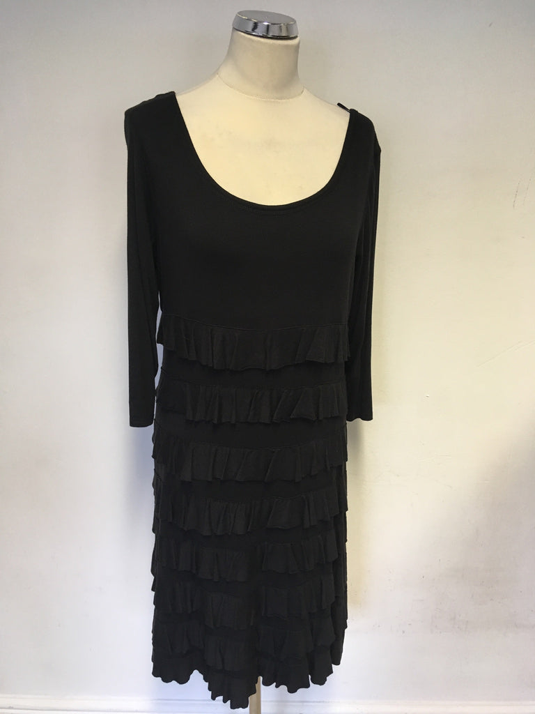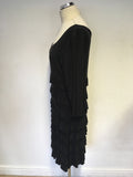 ROMAN ORIGINALS BLACK TIERED FRILL STRETCH JERSEY DRESS SIZE M