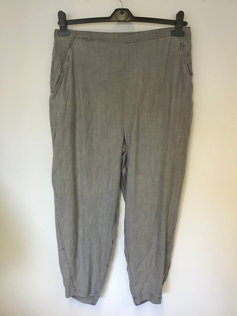 SAHARA GREY LINEN BLEND TAPERED LEG TROUSERS SIZE 14/16