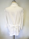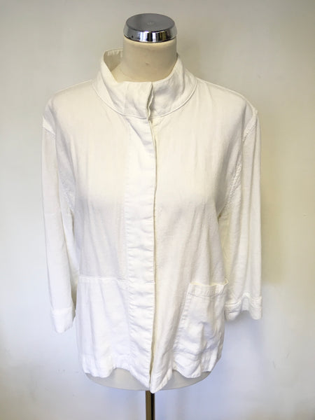 SAHARA WHITE LINEN BLEND 3/4 SLEEVE COLLARLESS JACKET SIZE L