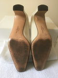 IN V GOOD PRELOVED CONDITION OTHER THAN HAS SMALL SCUFF TO BACK OF ONE HEEL AND ONE SMALL SCUFF TO LOWER PART OF OPPOSITE HEEL SHOULD BE ABLE TO BE RE TOUCHED, HARDLY WORN