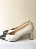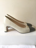 SALVATORE FERRAGAMO CREAM & BLACK TRIM LEATHER COURT SHOES SIZE 2.5 /35.5