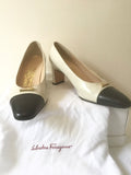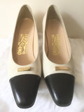 SALVATORE FERRAGAMO CREAM & BLACK LEATHER HEELS