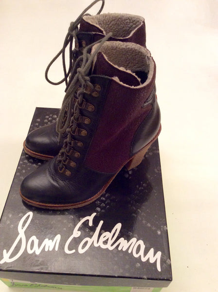 Sam Edelman Tara Black & Brown Lace Up Ankle Boots Size 5/38