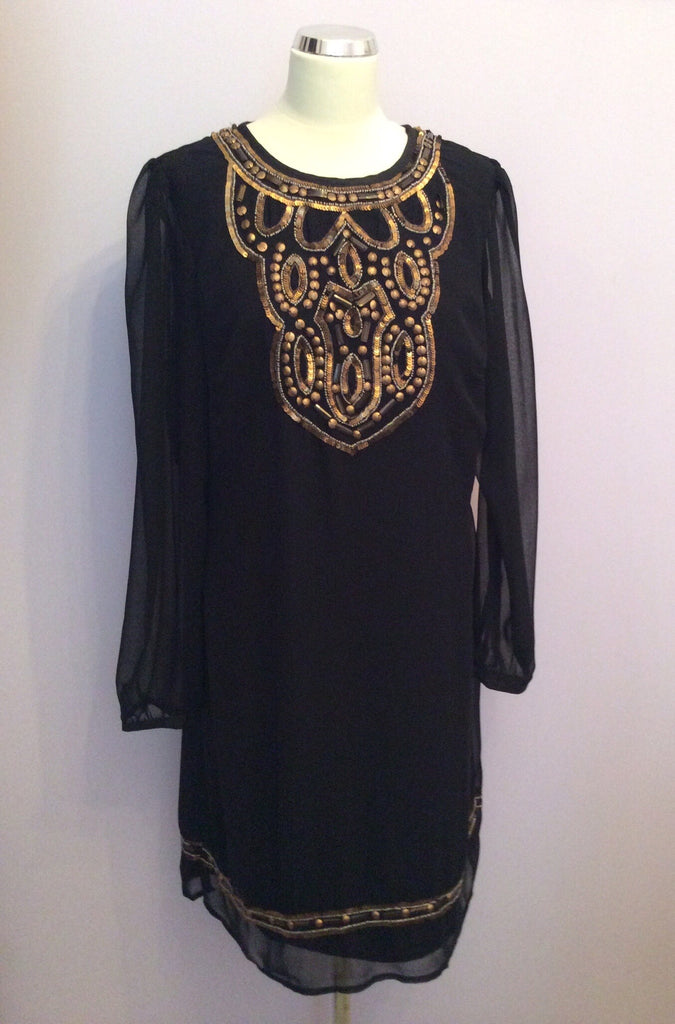 Savoir Black & Bronze Bead & Sequin Trim Shift Dress Size 18